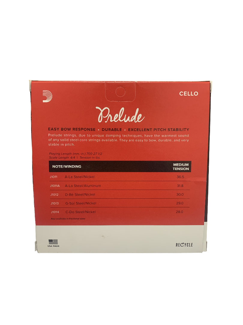 El set incluye las cuatro cuerdas estándar para cello tamaño 4/4 (Do, Sol, Re y La) con tensión media, proporcionando un equilibrio ideal entre proyección, comodidad y tono cálido. La línea Prelude es conocida por su resistencia y larga vida útil, siendo una excelente opción para práctica diaria, estudio y presentaciones.